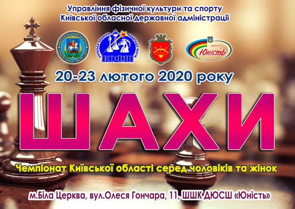 З 20 по 23 лютого2020 року відбувся чемпіонат Київської області з шахів серед чоловіків та жінок.